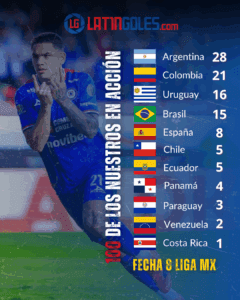 De los 22 goles registrados en la octava fecha de la Liga MX, ocho fueron obra de jugadores sudamericanos, mientras que los centroamericanos no lograron anotar en esta jornada.